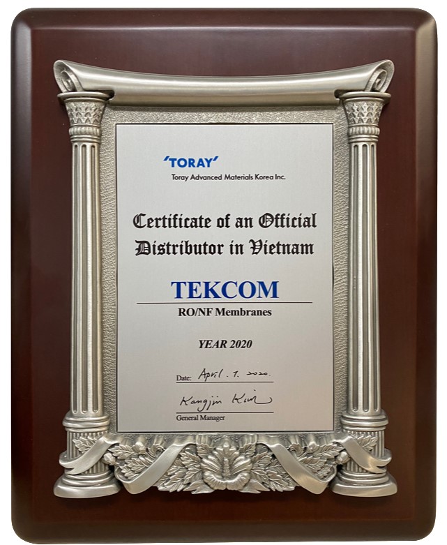 CHỨNG NHẬN PHÂN PHỐI CỦA TORAY CHO SẢN PHẨM MÀNG LỌC RO TẠI VIỆT NAM