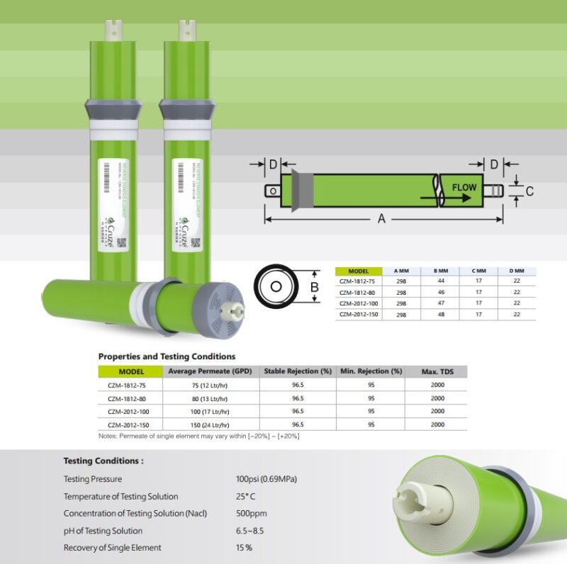 Có 3 phiên bản màng lọc RO dân dụng: 75 GPD, 80 GPD và 100 GPD