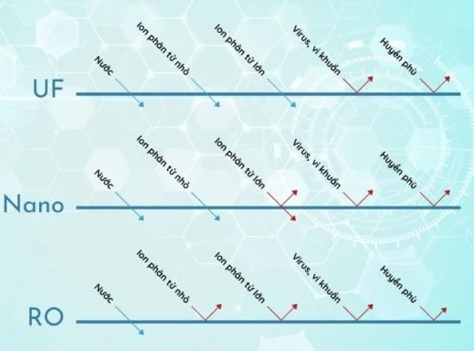 Tiêu chí | Màng RO | Màng UF | Màng Nano |